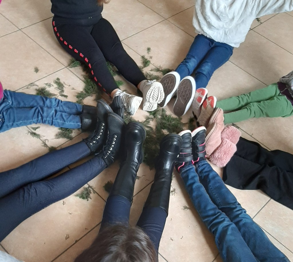 - I ragazzi si siedono in cerchio, con musica rilassante a tema naturale in sottofondo, per aumentare la loro concentrazione