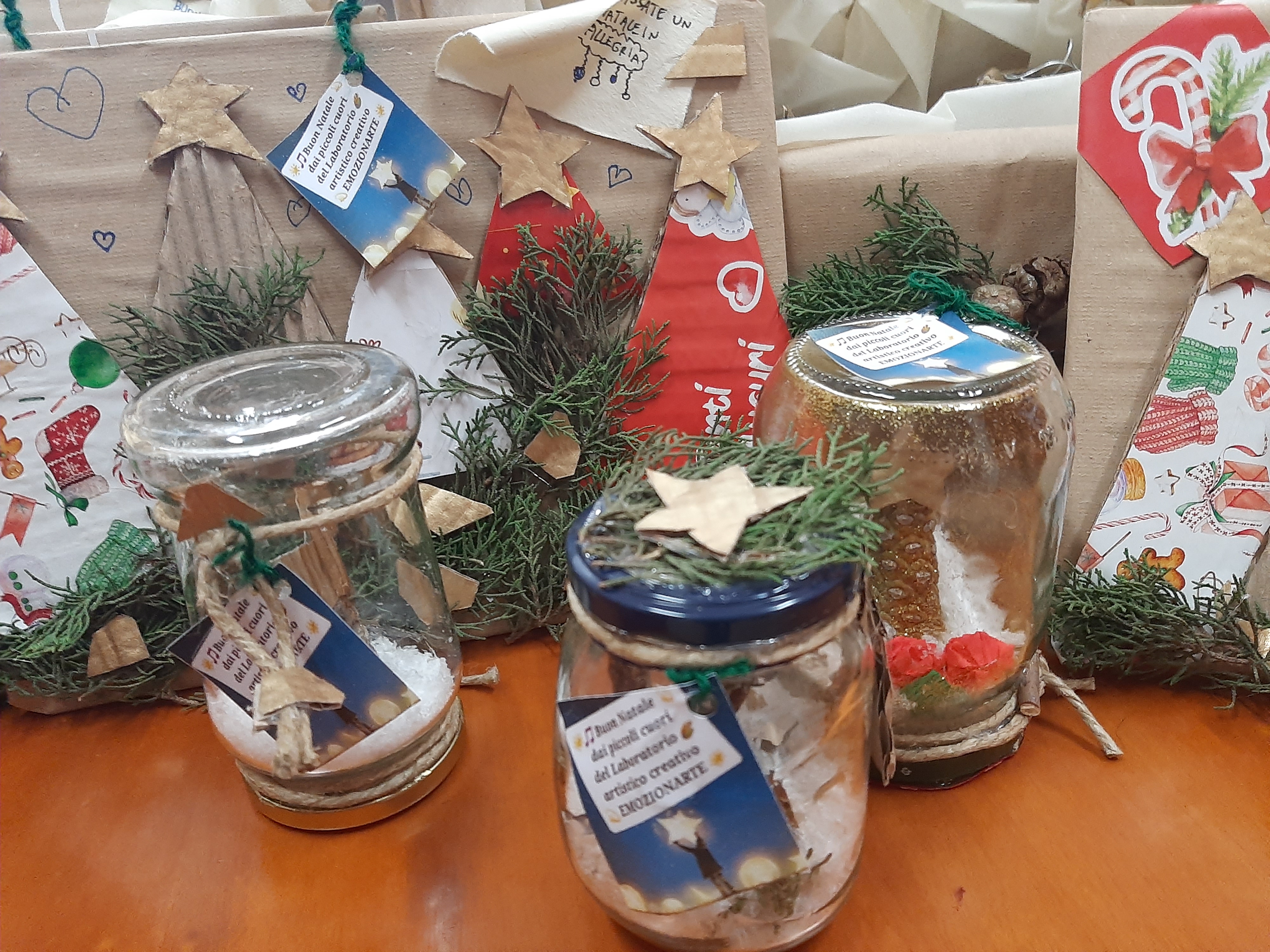 Durante le festività, vengono realizzati oggetti a tema, allo scopo di sensibilizzare i ragazzi alla condivisione e al lavoro di gruppo, con la finalità di donare l’operato in beneficienza. In periodo natalizio, è stata dedicata una lezione alla realizzazione di “palle di neve”, quadretti e decorazioni, che sono state offerte a mercatini di beneficienza.